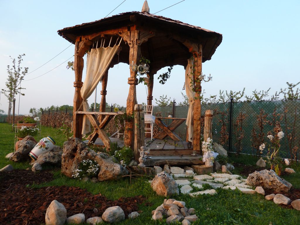 Gazebo in legno antico rovere scolpito a mano, unito unicamente con chiodi e collegamenti in legno amovibili per montaggio e smontaggio…