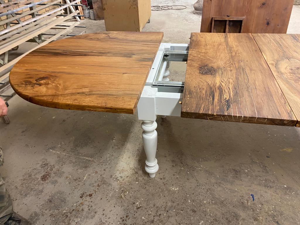 Tavolo artigianale su misura in antico rovere massiccio, recuperato da un casale toscano del 1820. Un pezzo unico che unisce storia e funzionalità grazie al sistema centrale scorrevole con prolunghe integrate. Eccellenza Made in Italy per il tuo arredamento sostenibile.