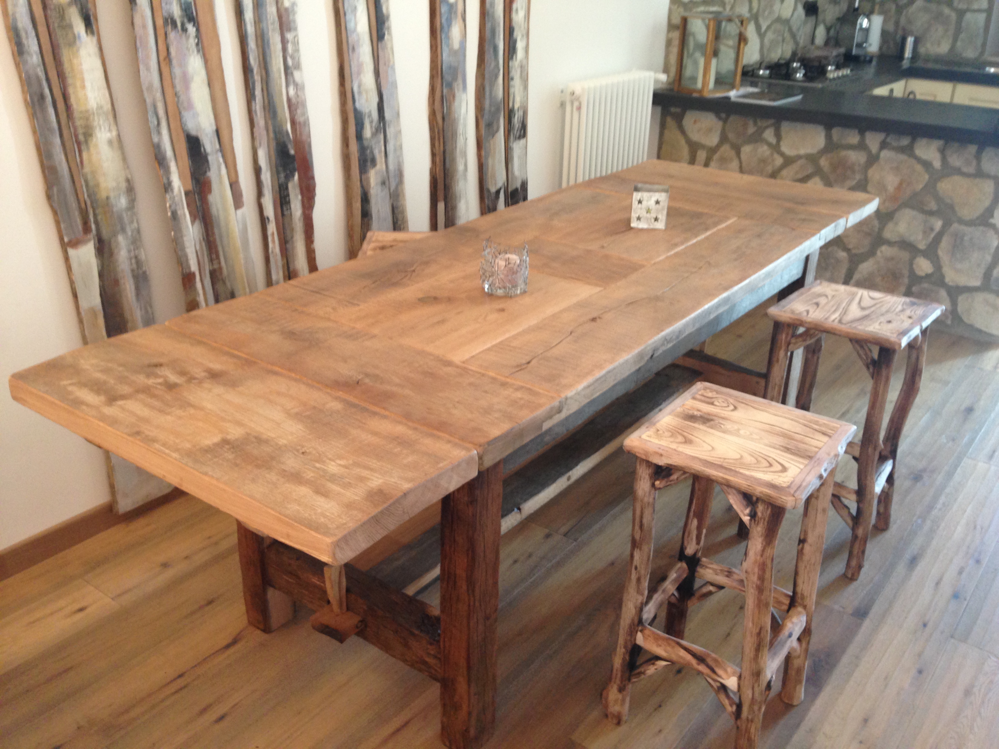 Tavolo in rovere antico: assito recuperato da un solaio di un convento d'epoca.