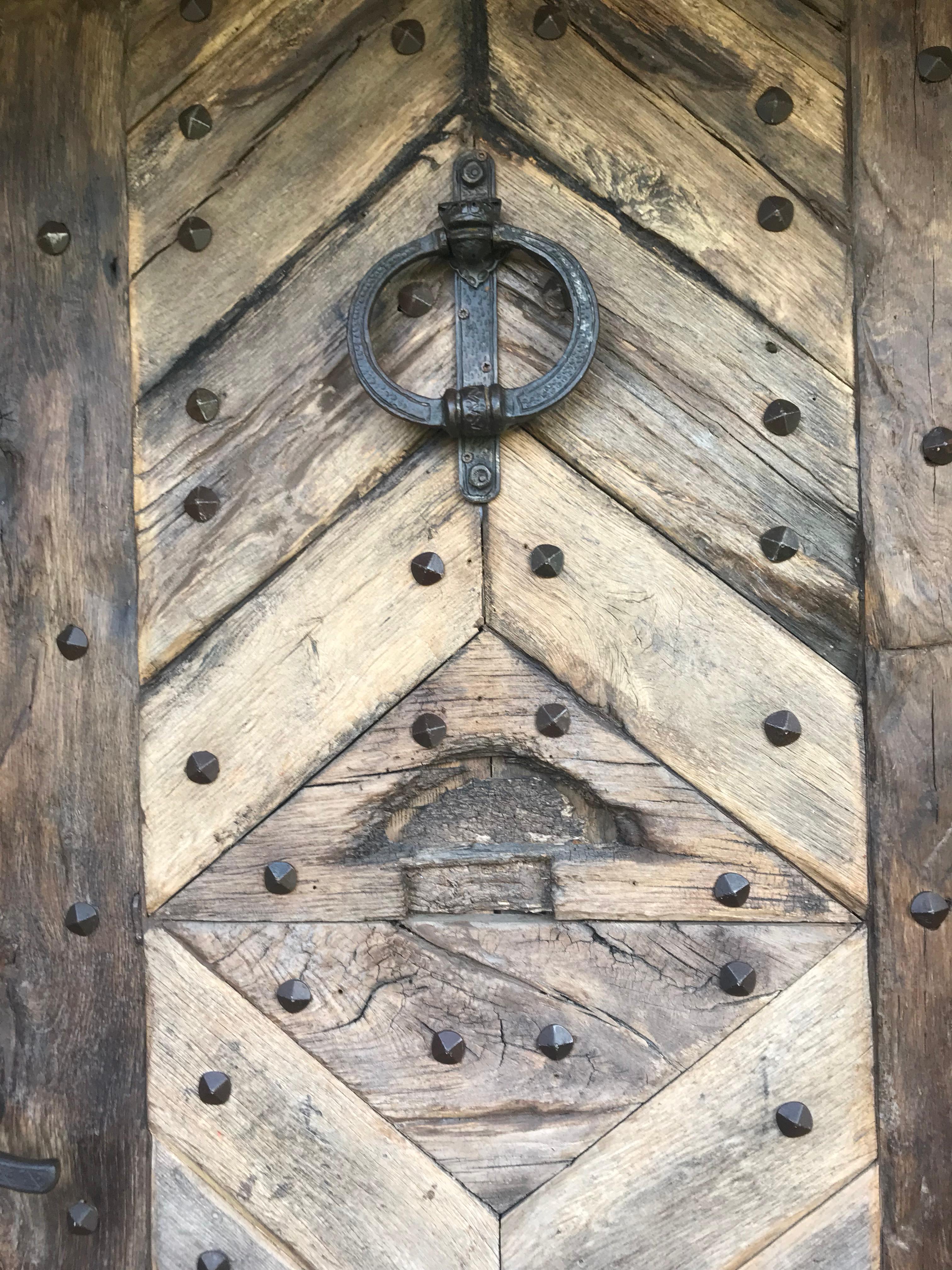 Dal recupero tavolato storico maniero francese abbiamo realizzato questo portone 2 ante completato da chiodi in forgia…