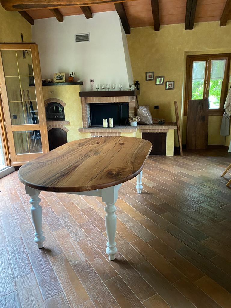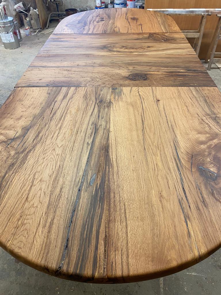 Tavolo in quercia antica massiccia realizzato su misura interamente a mano previo uso di ascia scalpello motosega, struttura portante e…