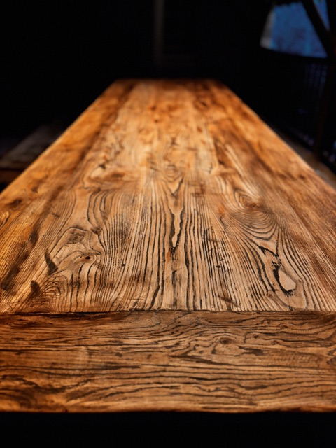 Ogni dettaglio è frutto di una lavorazione lenta e curata: la piallatura a mano dona alla superficie una texture vibrante e unica al tatto, mentre la stuccatura artigianale assicura una continuità perfetta tra le venature.
