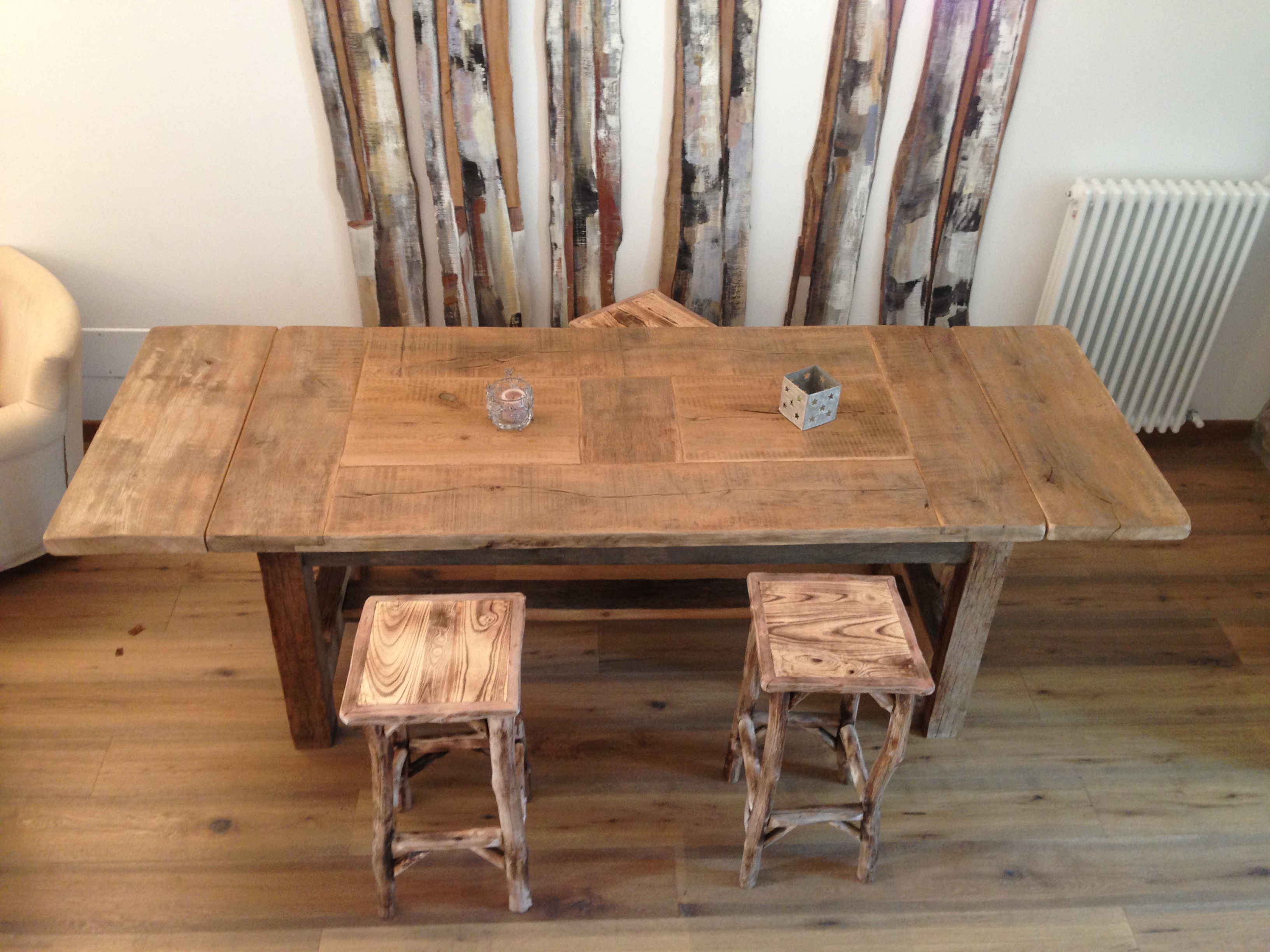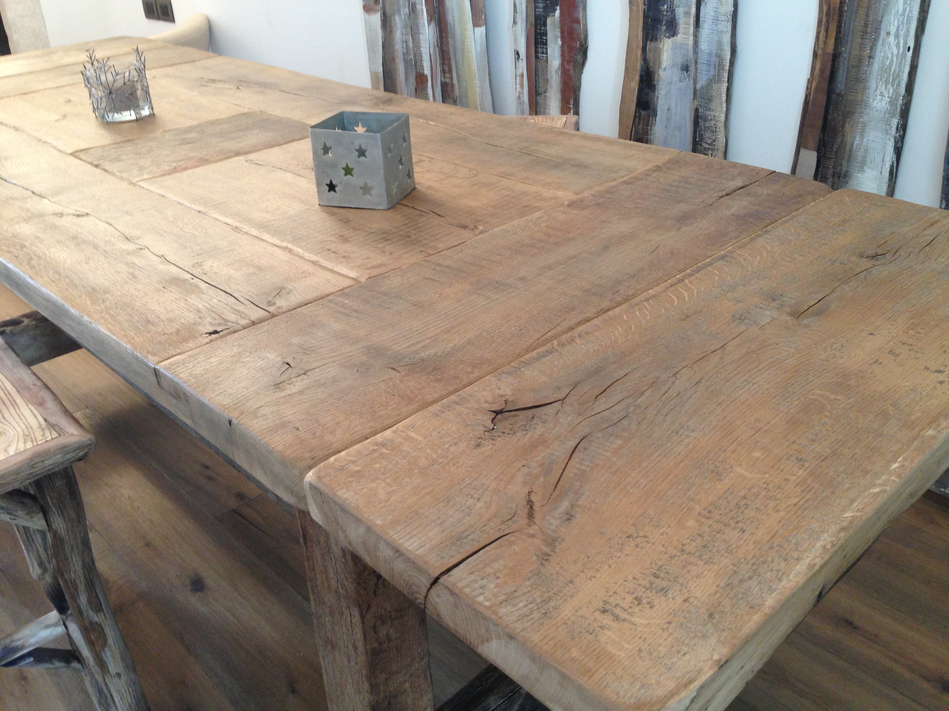 Tavolo in rovere antico: assito recuperato da un solaio di un convento d'epoca.